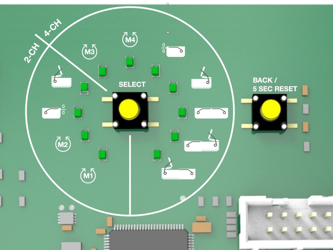 The controller auto-detects connected components and adapts the setup menu accordingly. Spa size and cover weight are auto-setup. The dynamic LED island will acknowledge a completed step and move to the next one automatically. Not required steps are not enabled.