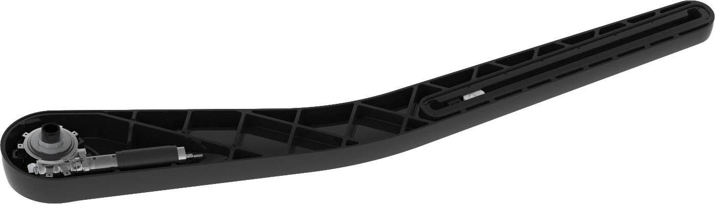 The lifter arm is a major part in the foldaway system. Molded from UL outdoor rated black Polyurethane they match all spa cabinet colors, surface is micro textured and passed intensive UV test. There is no coating and no maintenance beside cleaning with fresh water. The equivalent of 6 years direct UV exposure caused no significant deterioration.